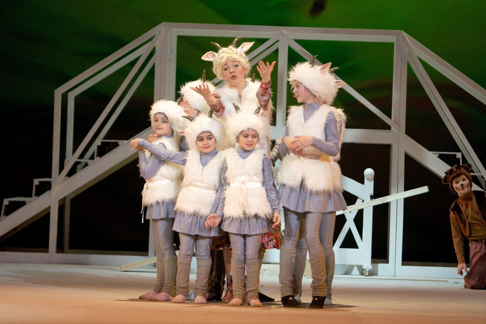 Знакомая каждому ребёнку с детства история про волка, семерых козлят и их маму предстанет в новой остроумной, занимательной и даже чуть детективной версии Вячеслава Цюпы. По замыслу постановщика, это своеобразная детская фантазия на сюжет сказки «Волк и семеро козлят», в которой удалось уместить нежность и теплоту материнских чувств, хитрость и смекалку коварного Волка и его товарищей — отпетых мошенников, взаимовыручку и дружбу козлят.