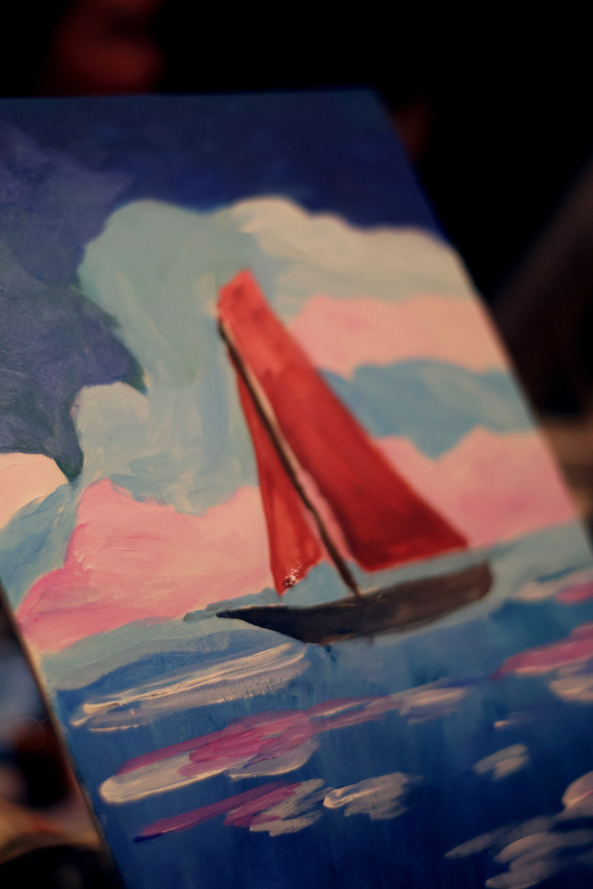 Алый парус — кульминация света — где флуоресцентные краски повторят эффект финального зарева, превратив ваш рисунок в персональное «чудо». Можно (и нужно) загадывать свои самые сокровенные мечты и желания, пока вы рисуете. И пусть они обязательно сбудутся!