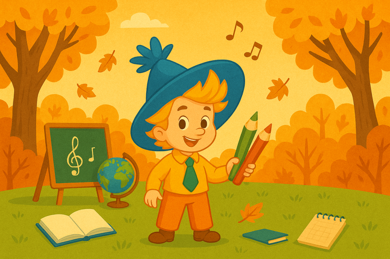 Осень наступила... Дети пошли в школу получать знания и расширять свой кругозор! А Незнайка прогуливал уроки и многое пропускал....но он всё равно хочет научиться читать, писать, рисовать, играть на музыкальных инструментах и сочинять стихи!