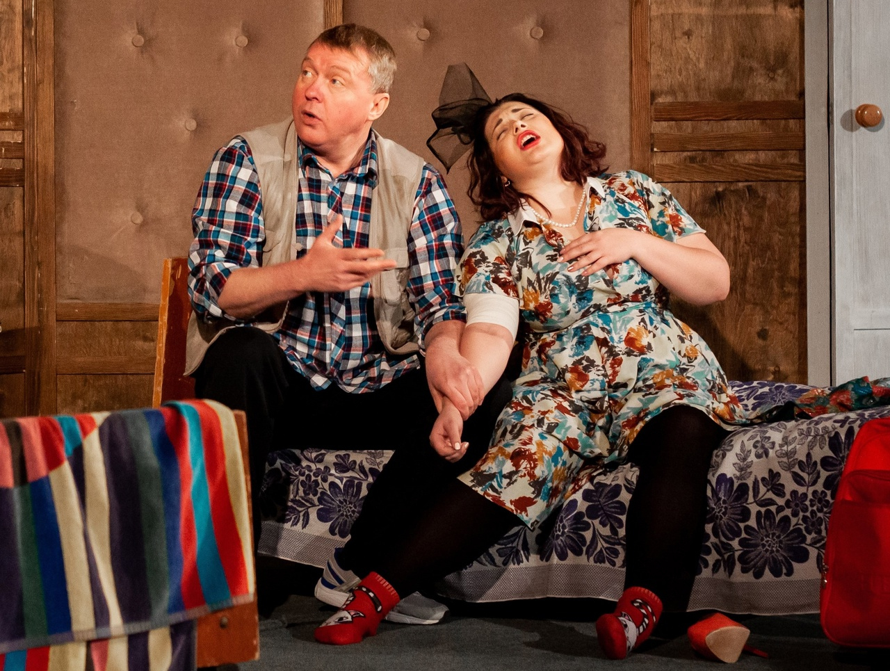 Герои пьесы в нелетную погоду оказались в одном номере отеля в ожидании рейса.