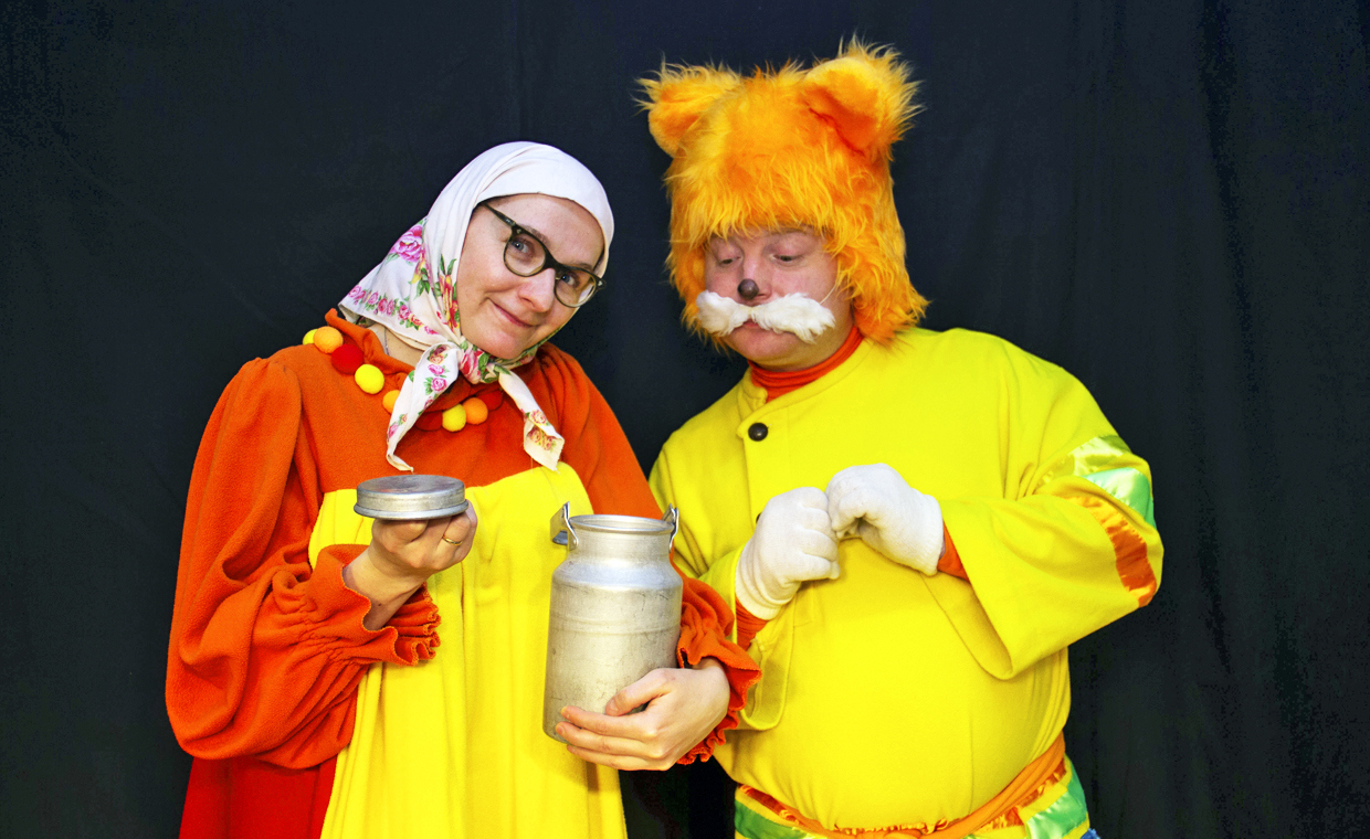 Первая часть проходит в зале, где ребятишки смотрят спектакль. Во время спектакля детей часто вызывают на сцену поучаствовать в действии.