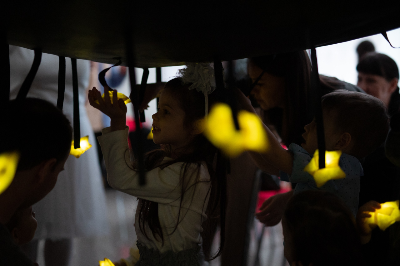 •с лошадкой, символом года, пробегали под аркой из белых ленточек (сенсорная активность)