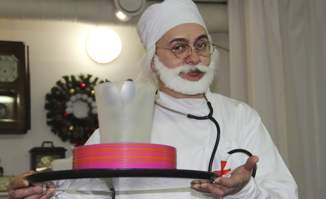 Первая часть проходит в зале, здесь ребятишки смотрят спектакль. Во время спектакля детей часто вызывают на сцену поучаствовать в действии.
