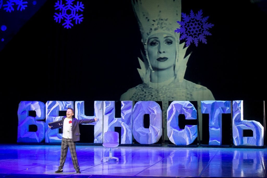 А еще на 20 лет раньше на экраны страны – тогда еще Советского Союза – вышла киноверсия «Снежной королевы» по пьесе Евгения Шварца, и знаете, кто там играл Кая? Слава Цюпа – тот самый Вячеслав Олегович, который сейчас, 50 лет спустя, представляет обновленную музыкальную сказку красноярским ребятам. А идея, сюжет, текст пьесы придуманы и написаны Детской оперной студией, которой руководит Наталия Цюпа. Ее воспитанники исполняют и роли в спектакле.
