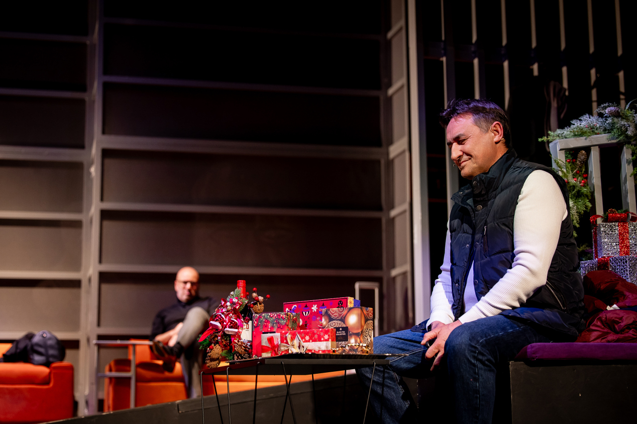 Нет, вообще-то всё, что происходит в нашем новом спектакле, можно в двух словах пересказать так: однажды зимой в одном сибирском… или уральском?... а, может, дальневосточном… короче, в аэропорте одного довольно далеко от Москвы расположенного города застряли четыре очень разных и, главное, абсолютно не знакомых друг с другом человека. И вот за те два-три часа, что они провели там вместе… хм… банально как-то всё это звучит, да?