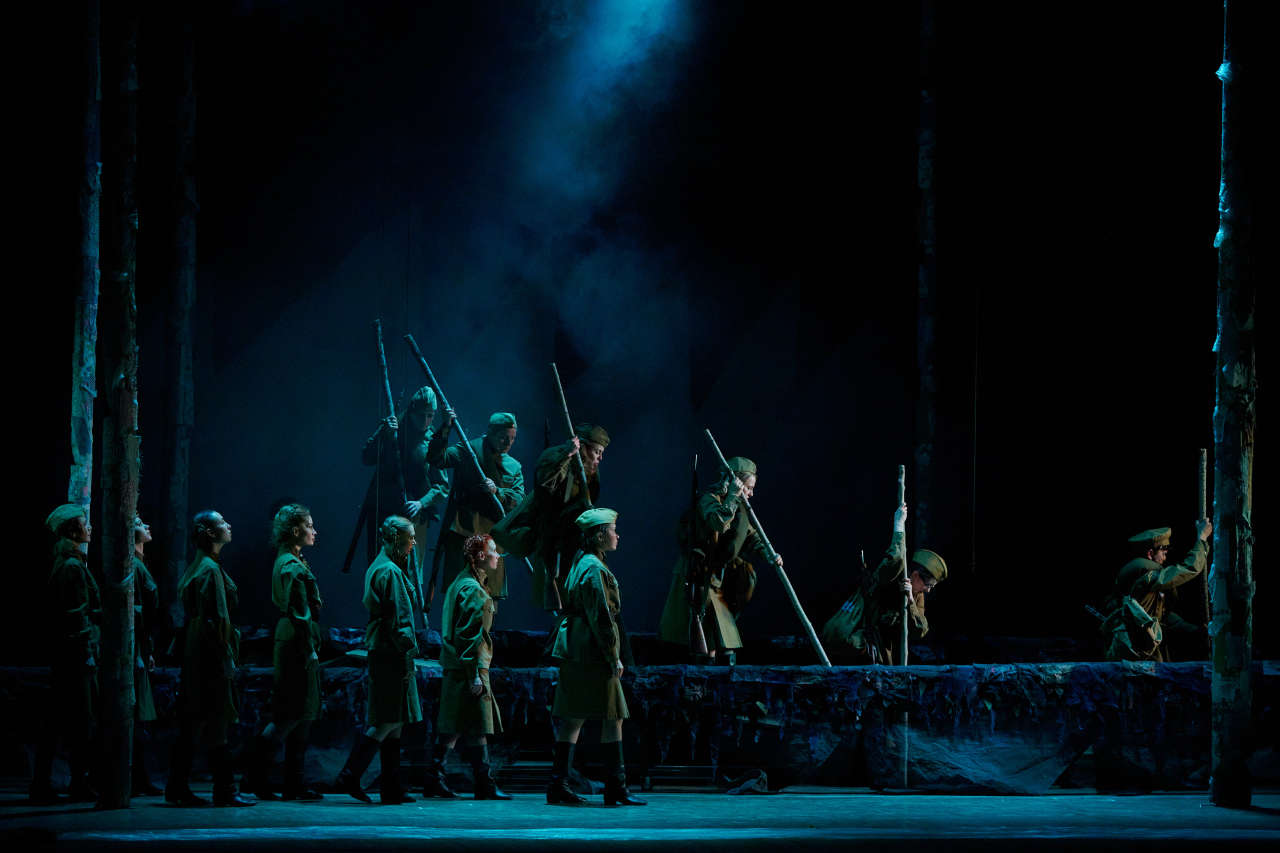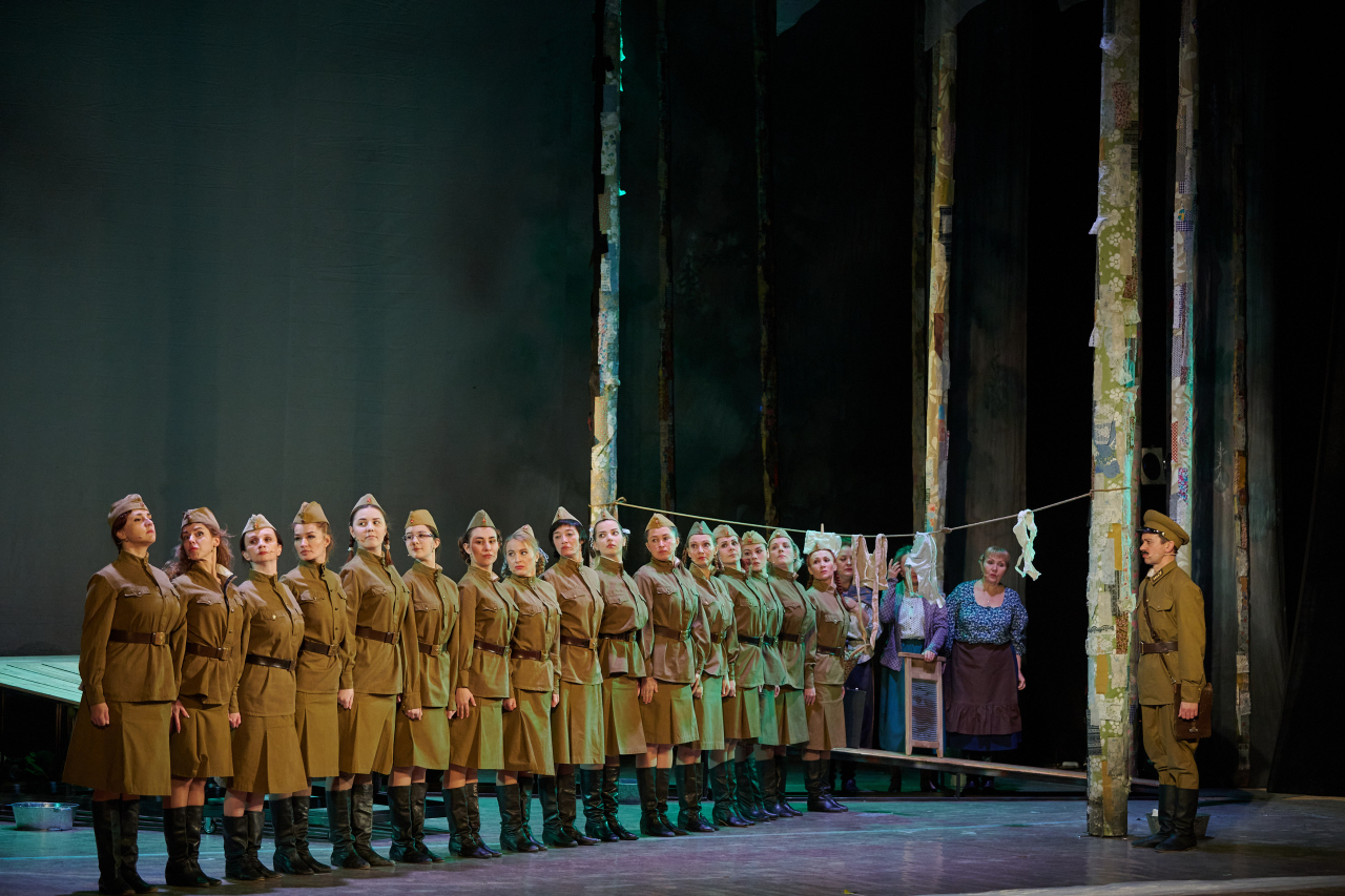 Мюзикл «А зори здесь тихие» новосибирского композитора Андрея Кротова, созданный по мотивам одноимённой повести Бориса Васильева, повествует о судьбе пяти юных девушек. Волею судеб и собственному осознанному выбору в годы Великой Отечественной войны они стали зенитчицами, оказав героическое сопротивление немецким захватчикам.