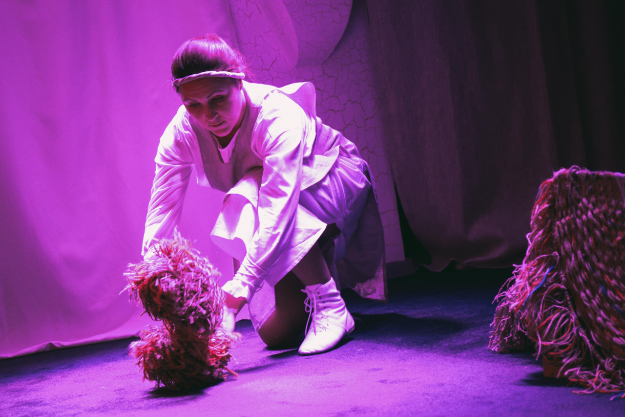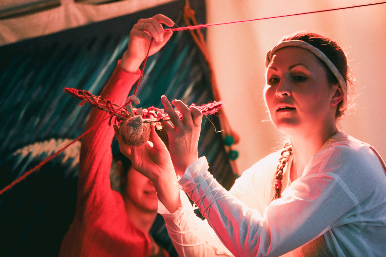 В спектакле используются интерактивные картины и динамические инсталляции, созданные из природных материалов, а удивительные звуки и мелодии старославянских музыкальных инструментов погружают в атмосферу общения с мудростью наших далеких предков.