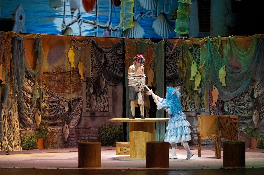 Лиса Алиса ловко играет в наперстки. Папа Карло, создающий кукол, — фрилансер, свободный художник. А театральному продюсеру Карабасу новая кукла нужна для раскрутки театра, он понимает, что «на старые куклы и прежние пьесы не ходит ни дельный народ, ни повесы!»