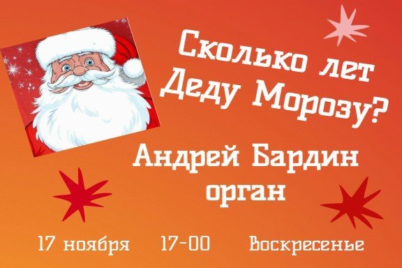 Появление Деда Мороза в русской литературе относится к первой половине XIX века. В 1840 году увидел свет сборник «Сказки дедушки Иринея» русского писателя, композитора и учёного Владимира Фёдоровича Одоевского, в который была включена сказка «Мороз Иванович». Если отталкиваться от этой даты, то в нынешнем году Деду Морозу исполняется 184 года. Любопытные истории о Деде Морозе расскажет Андрей Бардин, который исполнит на органе «Johannus» сочинения И.С. Баха, Л.К. Дакена, С. Франка, В.Ф. Одоевского.