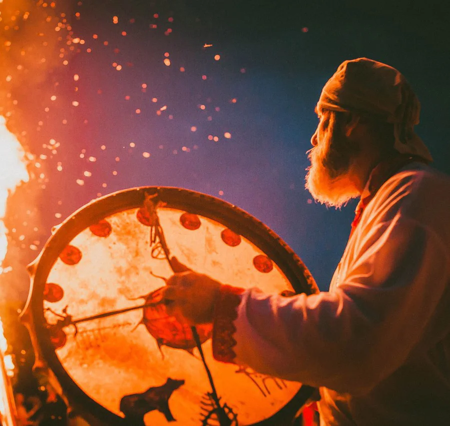 Все это под музыкальное сопровождение и звуки бубнов, которые является связующей нитью с Матерью Природой, с её могущей силою и гармонией!